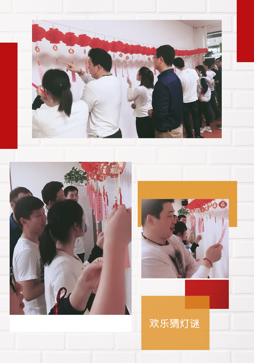 非常喜歡公司這次搞的活動(dòng),我已經(jīng)猜對(duì)好幾個(gè)燈謎了,整個(gè)下午都“滿血復(fù)活”,同時(shí)也感受到了濃重的節(jié)日氛圍,小伙伴們激動(dòng)的說。
